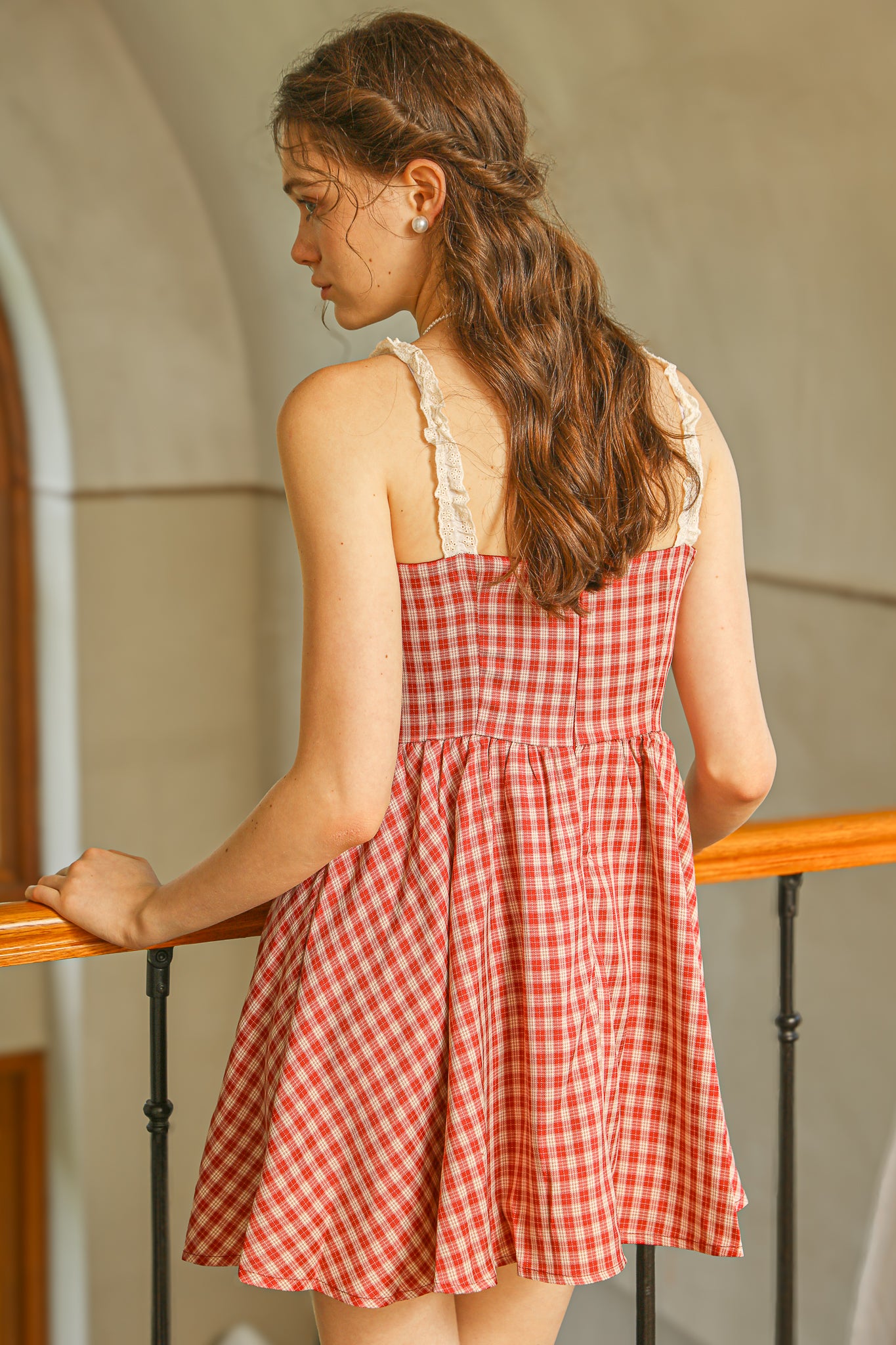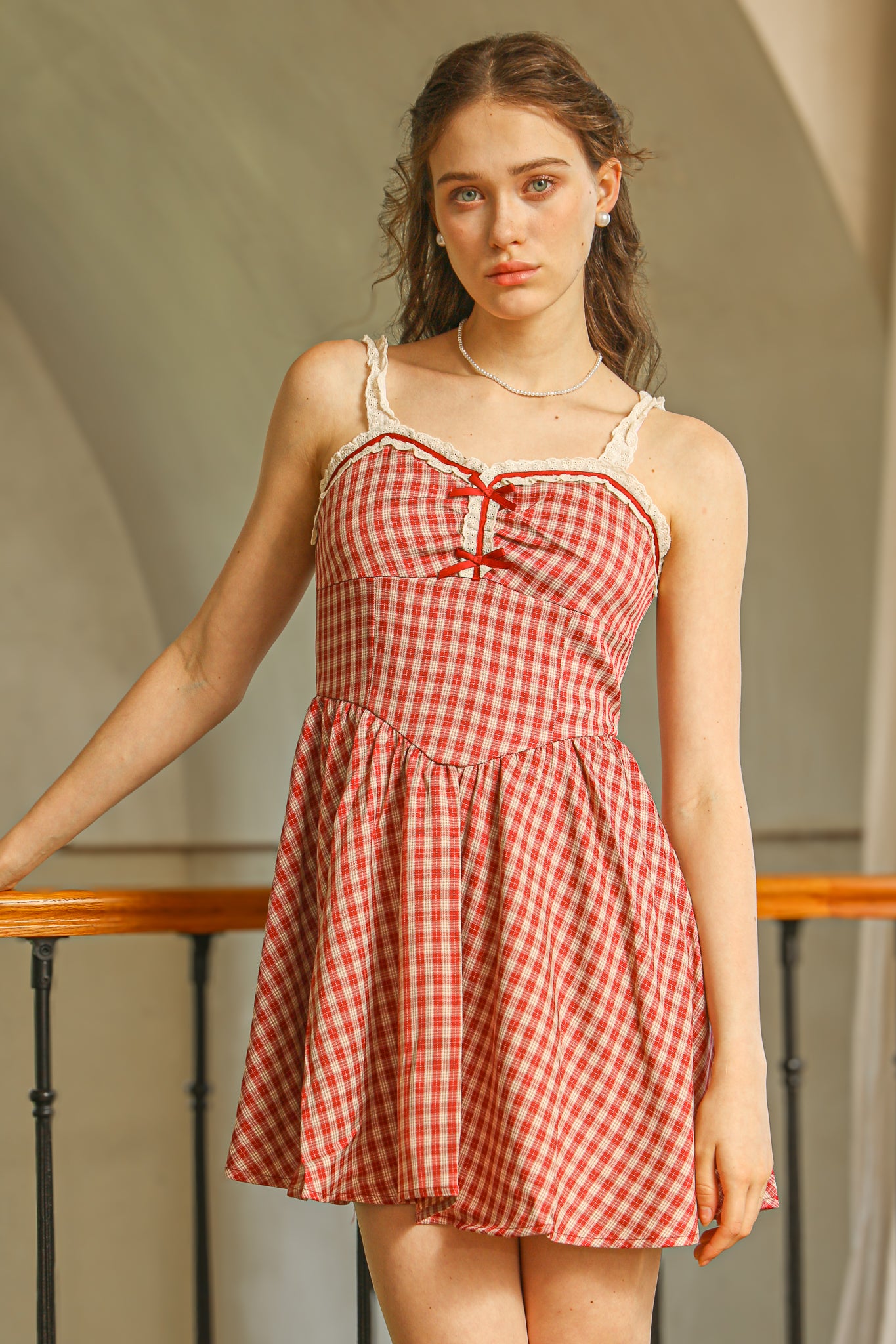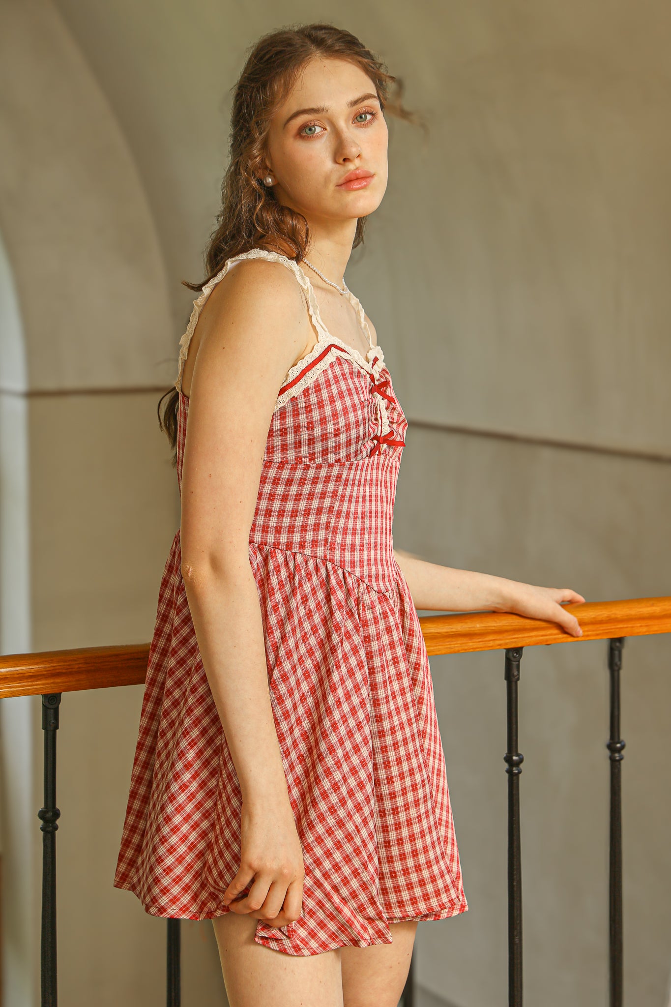 Features: Vintage-inspired red gingham dress, featuring delicate lace trim and a flattering babydoll silhouette.